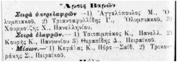 ...ότι ιδιαιτέρως μας έκαμε καλλίστην εντύπωσιν, ήτο η επιμονή των αθλητών του Ολυμπιακού να αγωνίζονται υπέρ του Συλλόγου των και εν γνώσει ακόμη της μη επιτυχίας των. Εύγε τους.