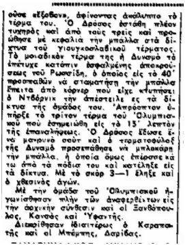 Στα πλαίσια της 12ης αγωνιστικής του πρωταθλήματος της σεζόν 1979-80, του πρώτου επαγγελματικού δηλαδή, μπροστά σε 27.000 θεατές που δεν λογάριασαν ούτε κρύο, ούτε τις γιορτές, προκειμένου να δουν την Ολυμπιακάρα τους, με ένα φάουλ κι ένα μπέναλντυ του Γαλάκου -ΟΥΥΥΣΤ-, κερδάμε 2-0 το Εθνικάκι-ντροπή του Πειραιά.