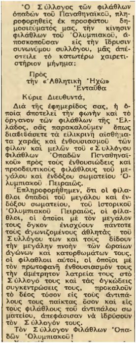 Οργανωμένοι βάζελοι, στην Ηχώ που ήταν η μοναδική καθημερινή αθλητική εφημερίδα πανελλαδικής κυκλοφορίας τότε, αναφέρονται στον κόσμο του Θρύλου με σχόλια που μόνο στο ΦΩΣ θα διάβαζε κανείς, χρόνια αργότερα. Προσέξτε επίσης πως μιλάμε για το Φεβρουάριο του 1953, ΠΡΙΝ αρχίσει η δυναστεία των 6 σερί πρωταθλημάτων της δεκαετίας του '50. Θα μπορούσε κάποιος να πει πως υπήρχαν άλλο επίπεδο και άλλα ήθη στην ελληνική κοινωνία και στις τάξεις των φιλάθλων. Σύμφωνοι, πάντως η ουσία είναι πως