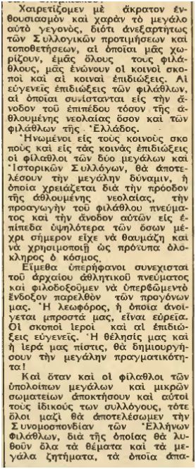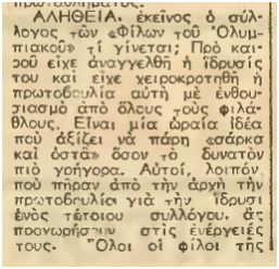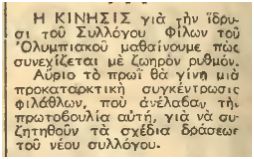 Βάζουμε δύο αποκόμματα με το ίδιο περιεχόμενο, μόνο και μόνο για να φανεί η ημερομηνία στο πρώτο, πάνω πάνω και να μην θεωρήσει κάποιος πως τα βγάζουμε από το κεφάλι μας. Από το 1953 λοιπόν υπήρχαν συζητήσεις στις τάξεις του κόσμου μας για να αναπτύξουν οργανωμένη δράση. Αυτές οι συζητήσεις δεν έφεραν αποτέλεσμα και λίγο αργότερα διαβάζαμε ότι δεν προχώρησε η ιστορία.