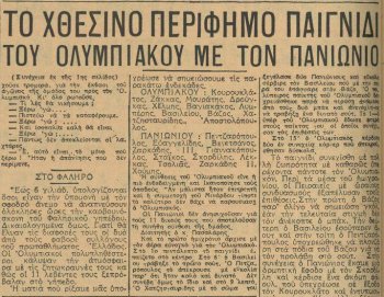 30/03/1952 ΟΛΥΜΠΙΑΚΟΣ - ΑΤΡΟΜΗΤΟΣ ΠΕΙΡΑΙΩΣ 7η Αγωνιστική Πρωτάθλημα Πειραιώς 2-0 37' ΔΑΡΙΒΑΣ, 52' ΚΟΠΑΝΙΔΗΣ