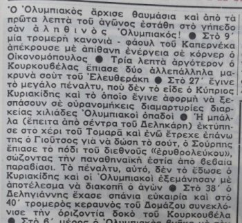 Στο 27' λοιπόν, δεν δόθηκε πέναλτι σε ανατροπή του Γιούτσου από τον Τομαρά όπως διαβάζουμε και στην ΑΘΛΗΤΙΚΗ και στη ΜΑΚΕΔΟΝΙΑ. Ήταν η εποχή που ο Ασλανιδιακός είχε τα «κόζια» για να χρησιμοποιήσω μια έκφραση ΜΠ.