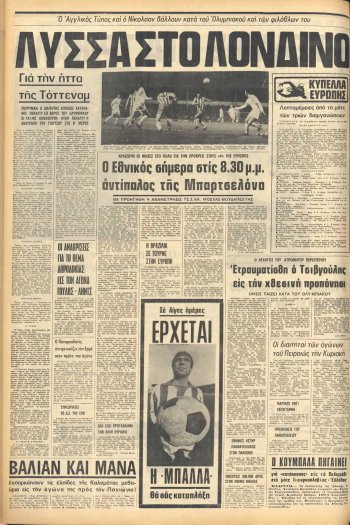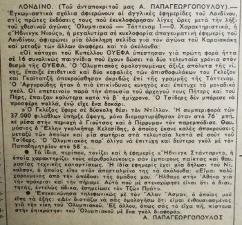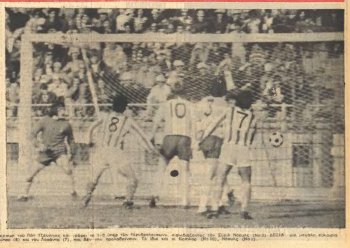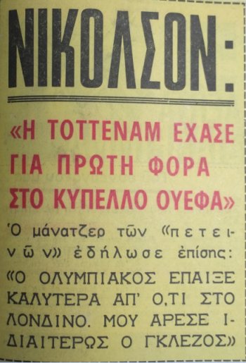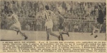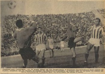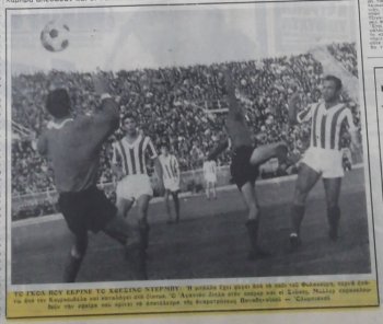 Ο πρώτος αγώνας του ΘΡΥΛΟΥ που είδα. Τα «βαφτίσια» μου στο Καραϊσκάκη. Εισιτήριο στους όρθιους κάτω από τη 10 θύρα (θέσεις όρθιων υπήρχαν γύρω από το στίβο του Καραϊσκάκη, γι αυτό και μαζευόταν πάνω από 45000 κόσμος). Ο πατέρας μου κρατούσε κόντρα στα κάγκελα γιατί ήταν τόσο το πλήθος που οι μπροστινοί πιέζονταν πάνω στα κάγκελα κι εγώ ήμουν σκάρτα 7 χρονών. Είχα βγάλει το κεφάλι από τα κάγκελα και θυμάμαι τον Αγγελή να χτυπάει τα πλάγια. Στο γκολ του Αργυρούδη έγινε πανικός! Και αυτή τη φορά η τύχη μας γύρισε την πλάτη. Για το κουέρβο τι να πω? Στο 70' δεν έδωσε πέναλτι που έγινε στον Γιούτσο. Δυο φορές οι εγγλέζοι έβγαλαν τη μπάλα πάνω από τη Γραμμή της εστίας τους. Στο 21' σε σουτ του Τριαντάφυλλου και στο 38' σε κεφαλιά του Αργυρούδη. Ετσι ήρθε μοιραία ο αποκλεισμός (4-0 ο πρώτος αγώνας). Άκουσα τόσο μπινελίκι εκείνη τη μέρα που πλέον ήμουν «εγκυκλοπαιδικά» ενήμερος για ΟΛΑ! Πάντως ήταν η πρώτη νίκη ελληνικής ομάδας επί Αγγλικής.