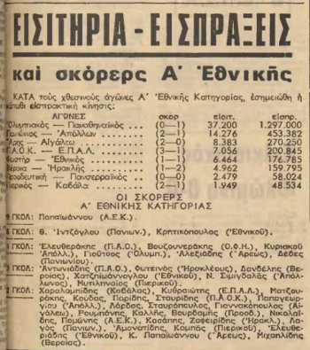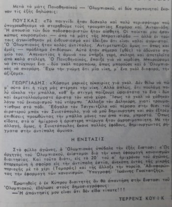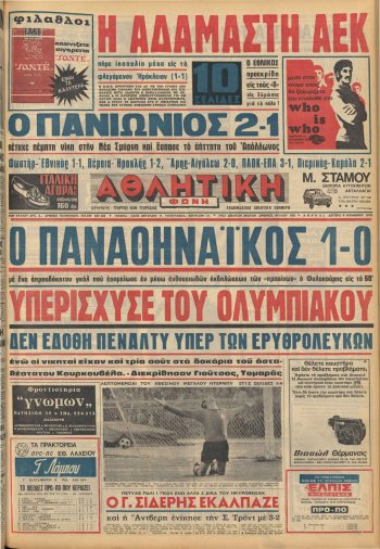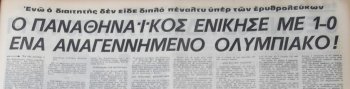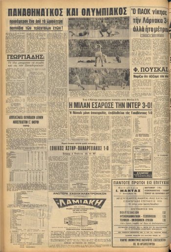 08/11/1970 ΟΛΥΜΠΙΑΚΟΣ – ΠΑΝΑΘΗΝΑΪΚΟΣ 8η Αγωνιστική Πρωτάθλημα Α' Εθνικής 0 – 1 68' Φυλακούρης