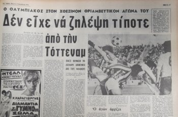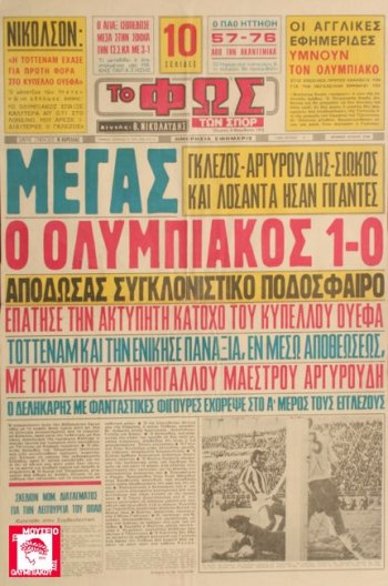 08/11/1972 ΟΛΥΜΠΙΑΚΟΣ – ΤΟΤΕΝΑΜ 2ος Γύρος, 2ος Αγώνας Κύπελλο UEFA 1-0 45' ΑΡΓΥΡΟΥΔΗΣ