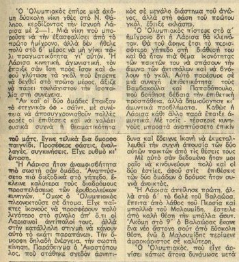 08/11/1981 ΟΛΥΜΠΙΑΚΟΣ – ΛΑΡΙΣΑ 8η Αγωνιστική Πρωτάθλημα Α' Εθνικής 2-1 45' Δράμαλης, 62' ΑΝΑΣΤΟΠΟΥΛΟΣ, 77' ΓΚΡΕΓΚΟΡΥ