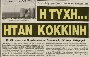 08/11/1989 ΑΠΟΛΛΩΝ ΚΑΛΑΜΑΡΙΑΣ – ΟΛΥΜΠΙΑΚΟΣ 8η Αγωνιστική Πρωτάθλημα Α' Εθνικής 0-2 31' - 70' ΜΗΤΡΟΠΟΥΛΟΣ