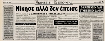 08/11/1993 ΕΔΕΣΣΑΪΚΟΣ – ΟΛΥΜΠΙΑΚΟΣ 11η Αγωνιστική Πρωτάθλημα Α' Εθνικής 0-2 27' ΤΣΑΛΟΥΧΙΔΗΣ, 47' ΠΡΟΤΑΣΟΦ