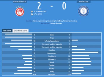 08/11/2015 ΟΛΥΜΠΙΑΚΟΣ – ΗΡΑΚΛΗΣ 10η Αγωνιστική Super League 2 -0 20’ Μιλιβόγιεβιτς , 61’ Ιντέγε