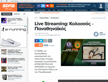Επιστρέφουμε όμως στο θέμα μας. Προχθές ο Παναθηναϊκός αντιμετώπισε τον Κολοσσό στη Ρόδο για το κύπελλο Ελλάδας στο μπάσκετ, ματς το οποίο δεν είχε τηλεοπτική κάλυψη(όπως και το ΓΣΛ Φάρος-Ολυμπιακός και το ΑΕΚ-Ρέθυμνο). Όμως το SDNA έδειξε μόνο τον αγώνα του ΠΑΟ σε Live Streaming(και όχι το ματς του Θρύλου ή της ΑΕΚ).