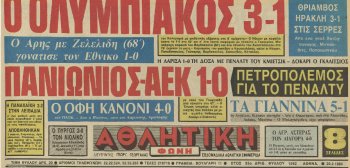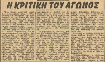 Η ομαδάρα του Κέμενυ Τίμπορ, ενός από τους μεγαλύτερους προπονητές που δούλεψαν στη χώρα μας, κερδίζει πολύ πιο δύσκολα από όσο δείχνει το τελικό σκορ τον Εθνικό στο Καραϊσκάκη, μπροστά σε μόλις 10.000 θεατές, αφού οι περισσότεροι γαύροι θεώρησαν εύκολο το ματς και δεν πήγαν στο γήπεδο. Πρωταγωνιστές ο Σούλης και ο Κοτρίδης, μαζί με τον Μπέμπη που κούραζε τον κόσμο με τις πολλές και ανούσιες ντρίμπλες του και φυσικά τον επιθετικό Υφαντή.