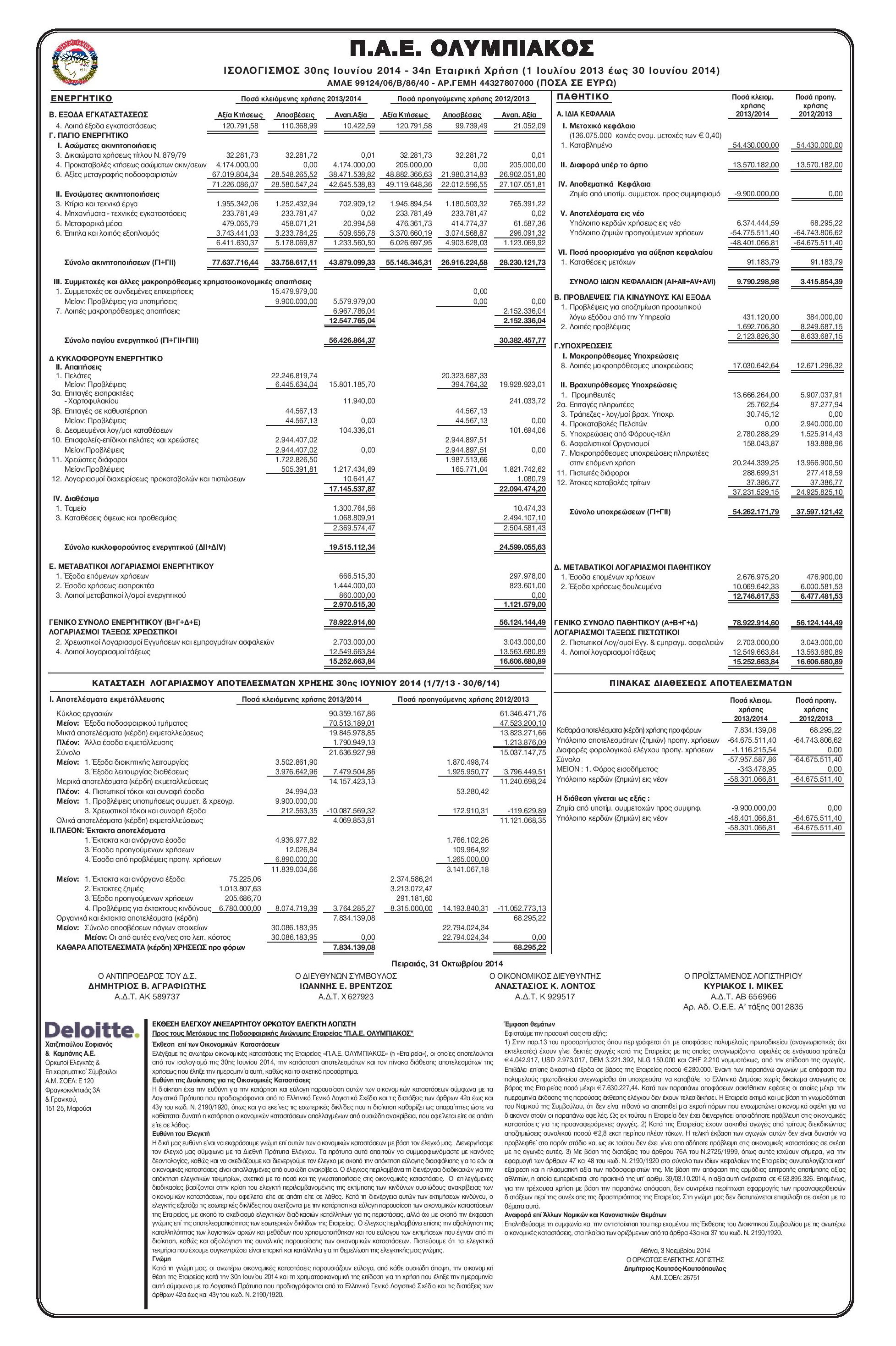 ΙΣΟΛΟΓΙΣΜΟΣ ΠΑΕ ΟΛΥΜΠΙΑΚΟΣ 2013-14